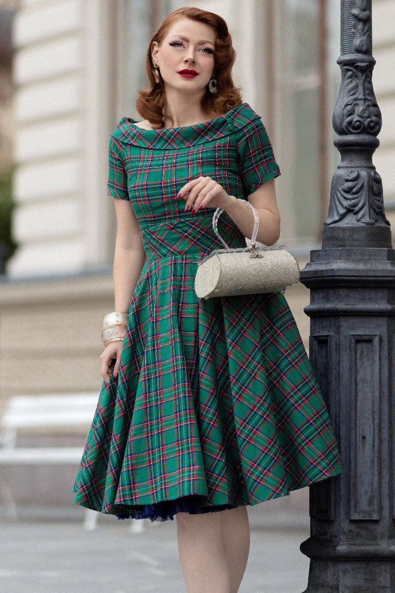 Darlene Green Check Swing Dress